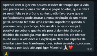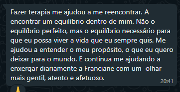 Todos os depoimentos são verídicos e recebidos de clientes reais, com suas expressas autorizações por escrito, conforme Nota Técnica 01/2022 do Conselho Federal de Psicologia.